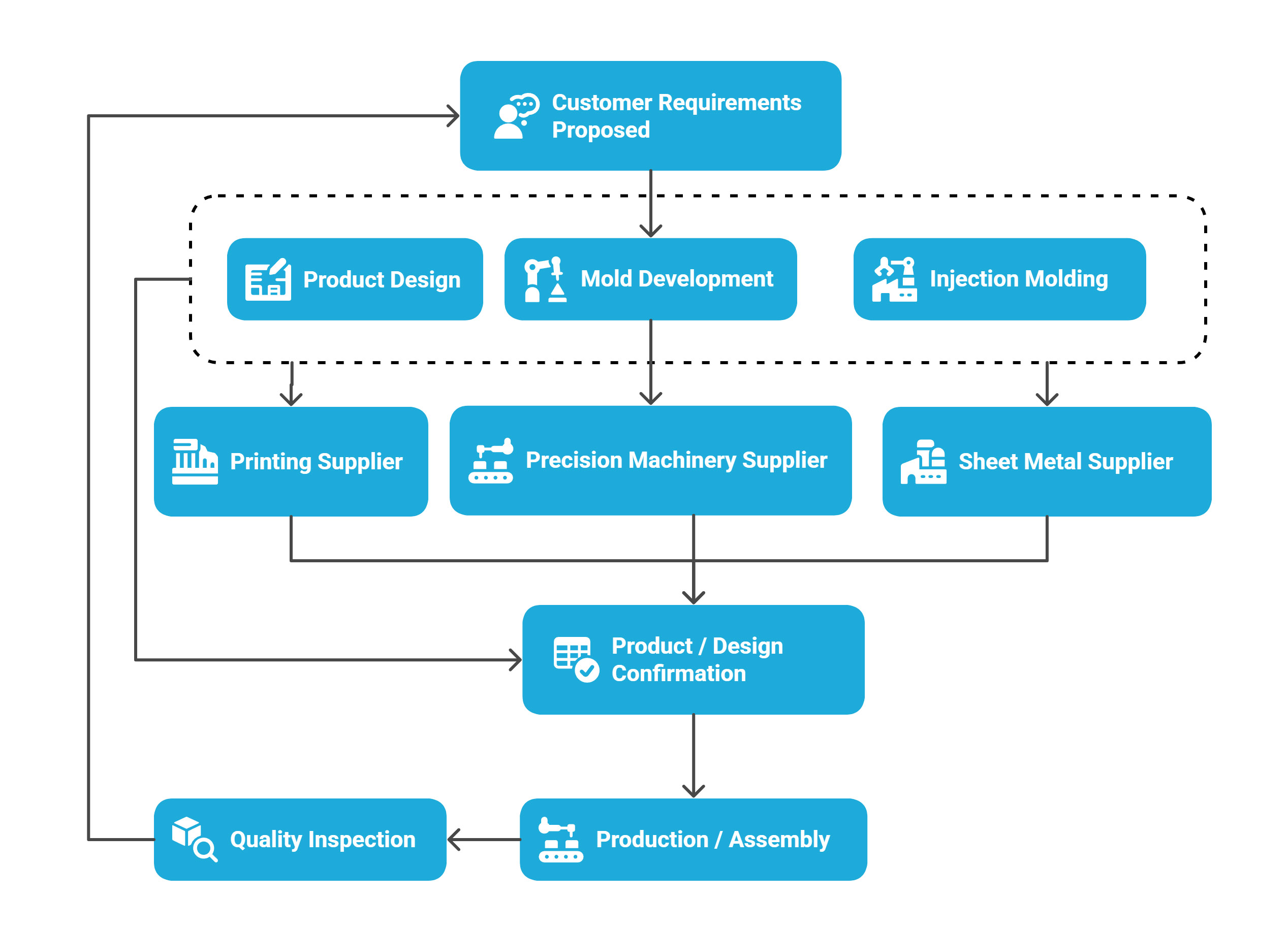 Seamless integration of product development, mold manufacturing, and mass production processes reduces cross-departmental coordination time. Professional integration minimizes communication costs between design and manufacturing teams, ensuring critical timelines are met and business opportunities are not missed.